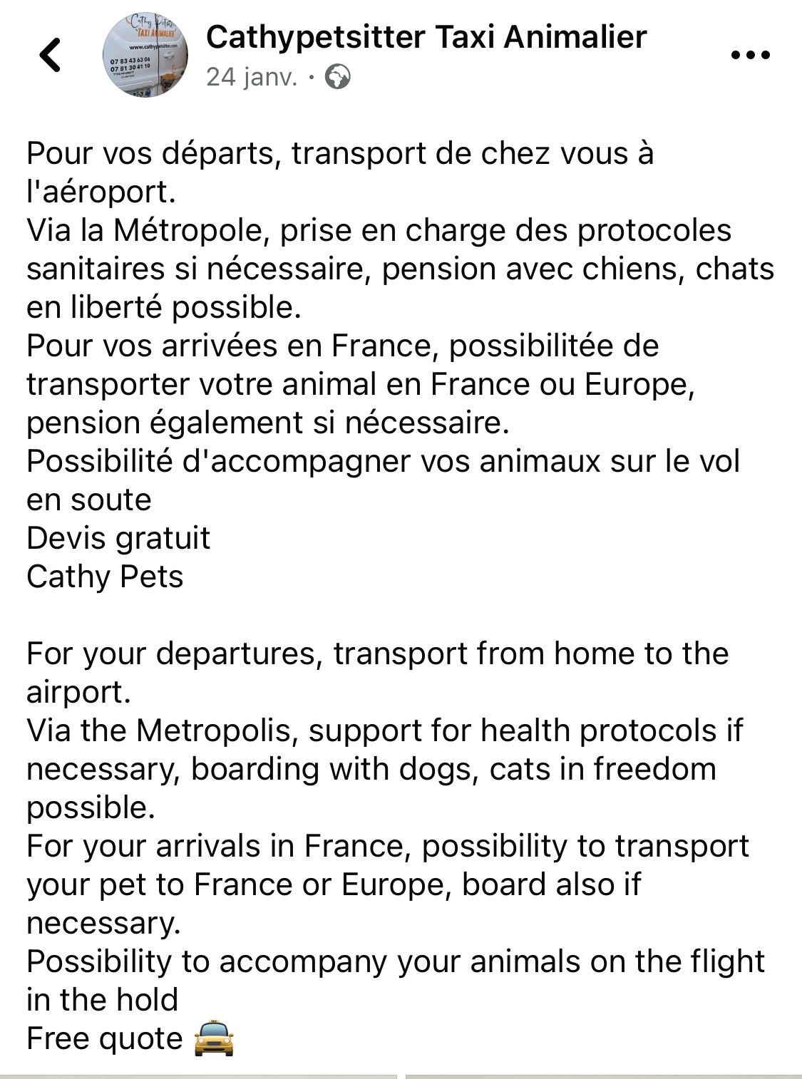 Contact direct : 07 81 30 41 10 — Taxi animalier